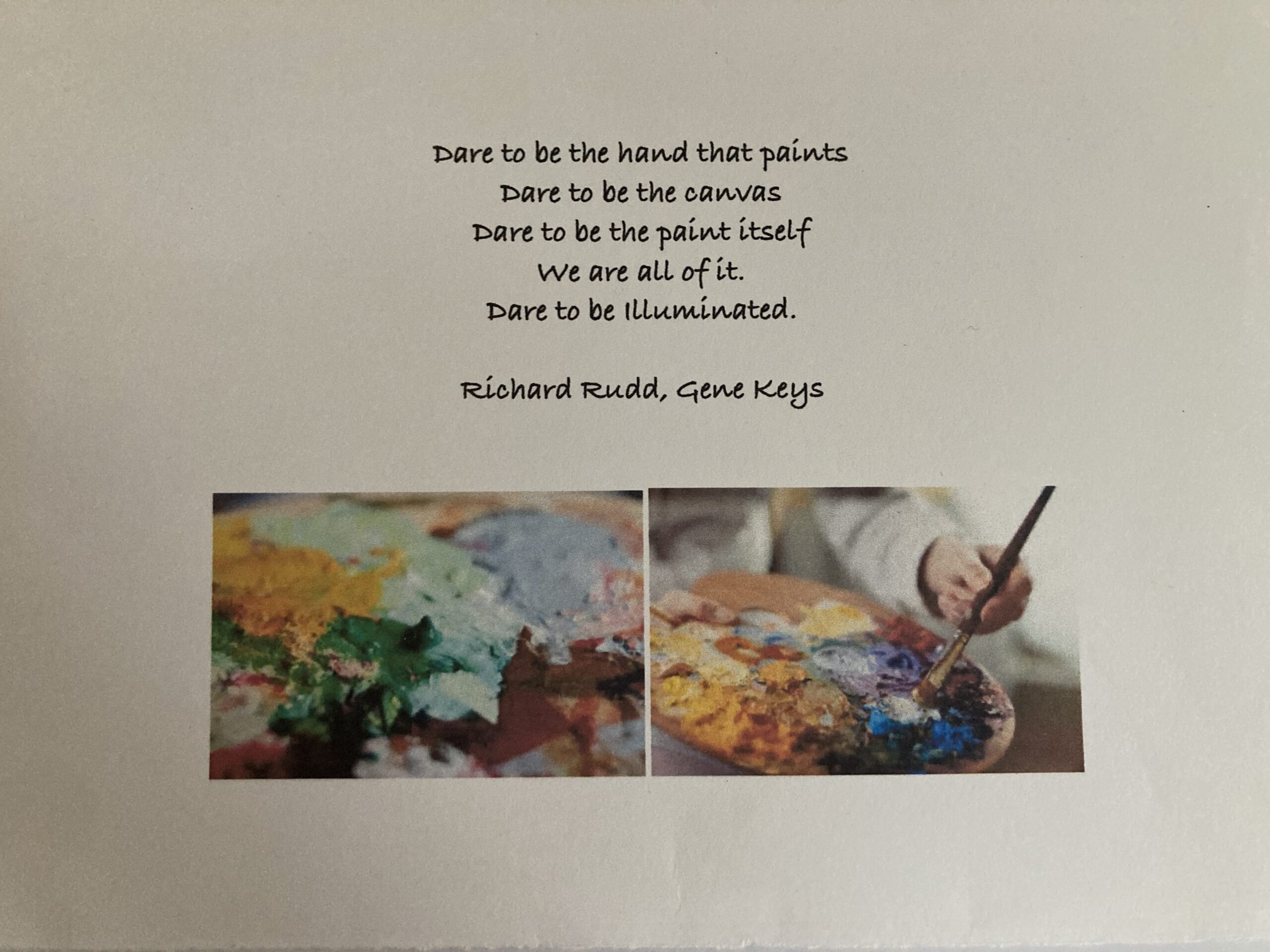 Ook organiseer ik op aanvraag dagen waarin je welkom bent om een eerste stap te zetten, in de workshop Dare to Paint! Alleen of in een groepje. Kwasten, doek, verf, pastelkrijt etc liggen klaar. Uitproberen hoe het is om in die creatieve stroom te stappen. Ik help jou en jullie graag over de drempel.